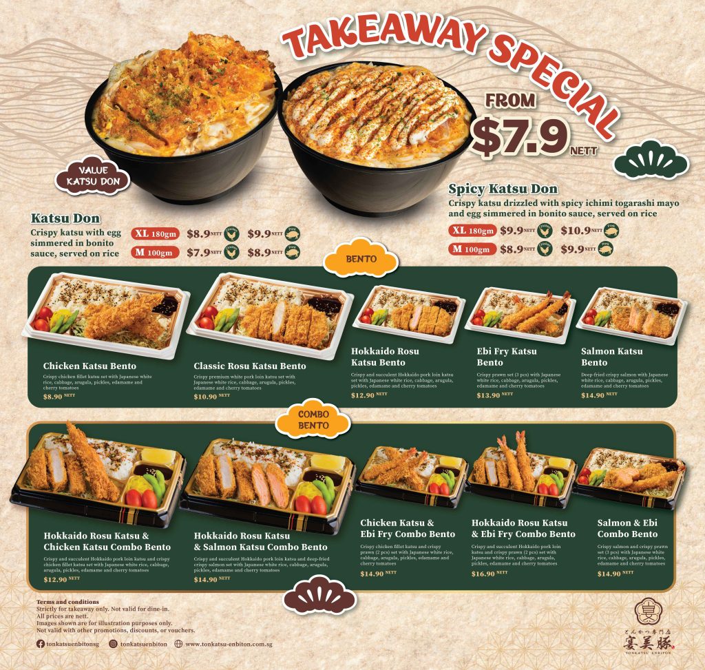 プロモーション Promotions Value XL Katsu Don Available at Changi City Point and Suntec City outlet only Takeaway Specials form $7.90 Nett Corporate Bento Orders ORDER HERE!